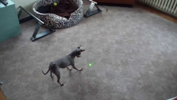레이저 포인터를 쏘아서 강아지가 빛을 따라 움직이게 하는 이 놀이도 많은 강아지들이 좋아하는 놀이 중 하나다. 주인이 직접 레이저를 쏘는 것도 좋지만 이마저도 귀찮다면 강아지 목에 직접 채울 수 있는 레이저 포인터를 구입하면 된다. 강아지가 레이저 포인터로 쏜 점을 따라 잡으려고 움직이면 저절로 운동도 되고 스트레스도 해소할 수 있다.
