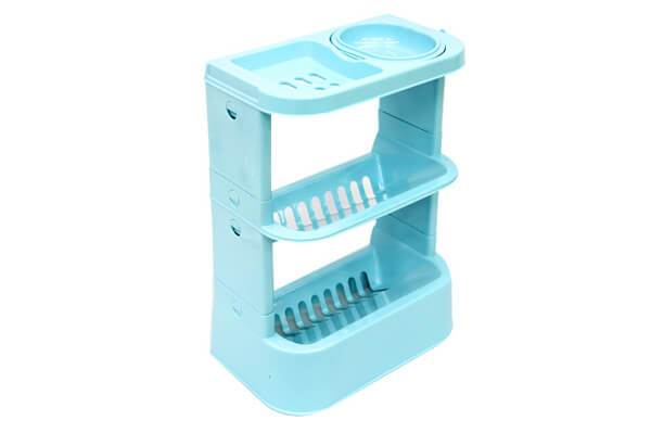 여기저기 흩어져있는 욕실 물품들을 한 곳에 수납할 수 있는 선반이다. 맨 위 칸에는 비누를 보관할 수 있으며, 가운데 칸과 맨 아래 칸에는 샴푸, 린스, 보디워시 등 샤워 제품을 보관할 수 있다. 또한 오른쪽 측면에 작은 고리가 있어서 샤워볼을 걸어둘 수도 있다. 각 선반의 아랫부분에 구멍이 뚫려 있어서 물이 고이지 않고 빠져나가 쾌적하게 사용할 수 있다.