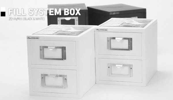 작은 물품들을 보관할 수 있는 플라스틱 2단 서랍장이다. 집이나 사무실 책상 위에 있는 사무용품들을 정리하거나 화장대에 굴러다니는 화장품들을 정리하기에 제격이다. 블랙, 화이트 2가지 컬러가 있으며 디자인이 심플해 어디에 두어도 잘 어울린다. 플라스틱 제품이어서 내구성이 뛰어나지는 않지만, 3,000원이라는 가격을 감안하면 꽤나 유용하게 사용할 수 있는 제품이다.