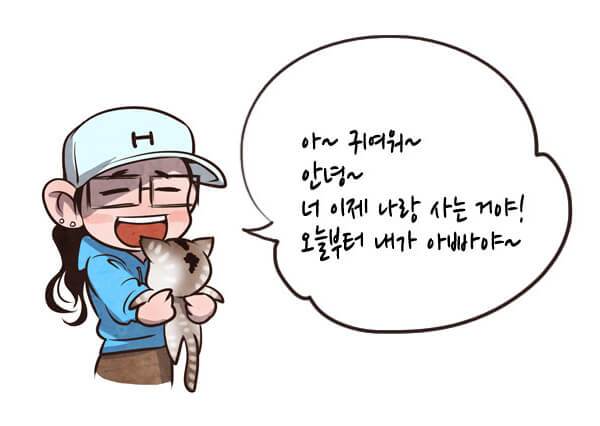'스노우캣'을 기억하시는지? 고양이 웹툰 1세대라 할 수 있는 '스노우캣'의 작가는 현재 카카오페이지에서 '옹동스'를 연재 중이다. 반려묘 나옹이와 은동이와 함께하며 겪는 소소한 일상을 다룬 웹툰으로, 고양이를 키우며 깨닫게 되는 삶의 소중함에 대한 이야기와 세심한 표현력이 특징이다.