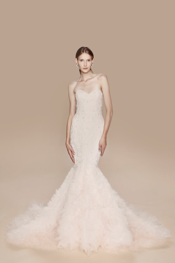 우아하고 여성미 물씬 풍기는 분위기로 소문이 자자한 브랜드. 그래서인지 웨딩드레스의 정석을 보여주는 듯 하다. 트렌디한 감성을 내비치면서도 본연의 클래식함은 잃지 않아 우아하면서도 세련된 느낌을 살리기 때문에 보면 볼수록 빠져드는 브랜드 중 하나다. 100% 최고급 수입 원단을 사용해 직접 제작하는 드레스로 복잡한 디테일 없이 소재와 실루엣만으로도 고급스러움이 느껴지는, 내공이 대단한 브랜드. 단아하고 깔끔한 느낌을 찾는 다면 ‘세인트 마리에’를 추천한다.