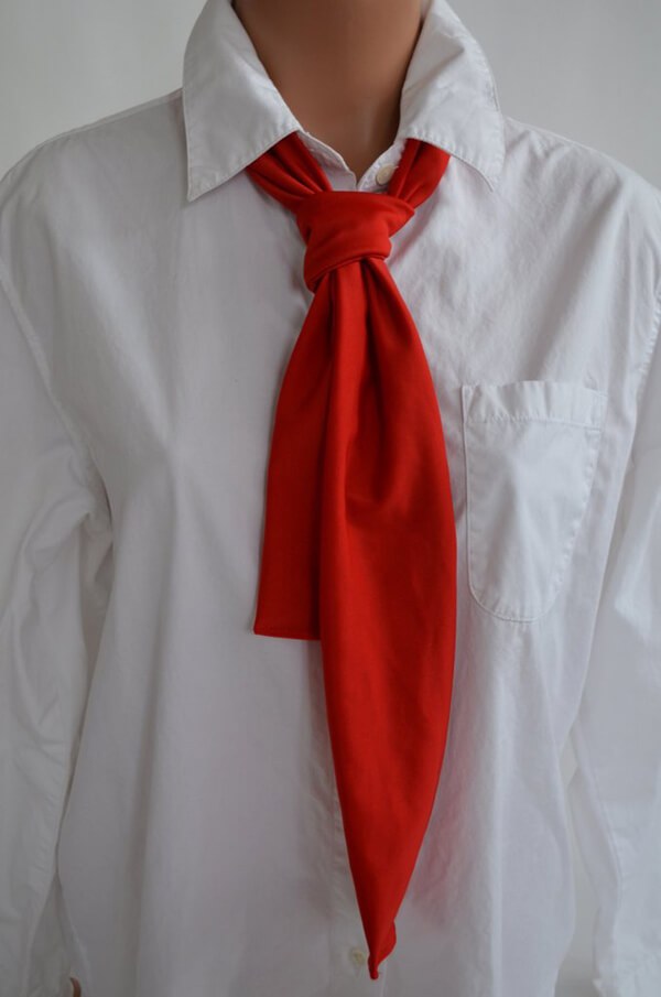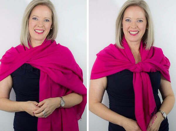 긴 머플러보다는 네모 모양의 사각 머플러를 활용할 때 쓰이는 방법이다. 사각 머플러를 대각선으로 접어 삼각형을 만든 뒤 삼각형의 꼭지가 등을 보게 해서 어깨에 두른다. 앞으로 온 양쪽 갈래를 가볍게 잡고 묶어주기만 하면 끝. 가장 간편하면서도 심플한 매력으로 널리 사랑 받는 방법이라고 할 수 있다. 등 뒤의 삼각형 꼭지와 앞 부분의 매듭의 위치를 바꿔 활용해도 또 다른 매력을 느낄 수 있는 매듭법.