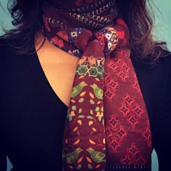 니트나 가디건 등 맨살의 피부가 드러나는 V자 형태의 의상과 잘 어울리는 매듭법이다. 숄더랩에서 활용 되었던 매듭법에서 한 단계 더 올라간 방법으로 삼각형 꼭지를 앞으로 한 뒤 양쪽 갈래를 다시 앞으로 돌려 매듭을 짓는다. 목과 쇄골뼈 부분 전체를 덮는 방법이기 때문에 보온성을 높이는 가장 효과적인 방법으로 불리기도 한다. 머플러의 재질에 상관없이 두루두루 활용될 수 있는 방법이다.