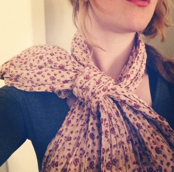 귀엽고 깜찍한 머플러 연출법이 없을까? 고민하던 이들에게 안성맞춤인 방법이다. 목에 걸쳐 가볍게 교차시킨 머플러를 리본을 매듯 묶어주기만 하면 새로운 스타일의 머플러 연출이 가능하게 된다. 이 방법을 사용 할 때에는 두껍고 큰 머플러보다는 얇고 가벼운 느낌의 머플러를 사용해야 적당한 사이즈의 리본을 연출하기에 좋다. 원피스에 특히 잘 어울리는 연출법으로 목 옆으로 살짝 비스듬히 넘겨서 활용하면 보다 세련되고 우아한 느낌을 줄 수 있다.