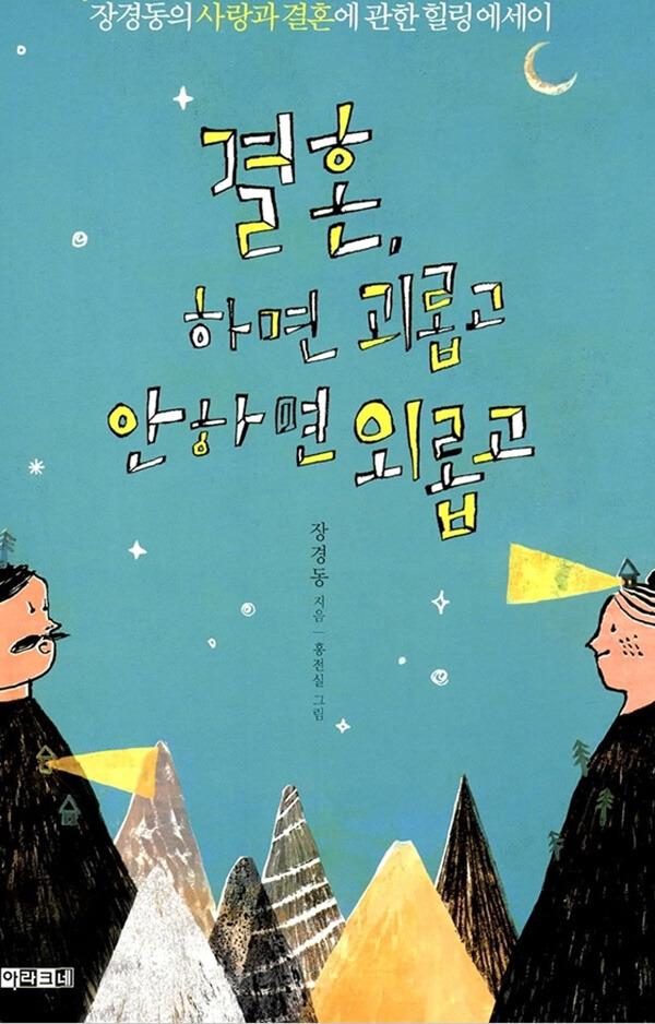 다수의 방송 출연으로 유명한 장경동 목사의 <결혼, 하면 괴롭고 안 하면 외롭고>는 사랑과 결혼에 관한 에세이집이다. 저자인 장경동 목사는 ‘인생에서 성공한 사람은 결혼을 잘한 사람이고 반대의 경우는 결혼을 잘못한 사람’이라고 주장하며 책을 통해 결혼의 중요성을 강조한다. 책에는 사랑하는 이들이 서로에 대한 소중함을 깨닫고 행복한 결혼 생활을 할 수 있는 유용한 비결들이 제시되어 있다.