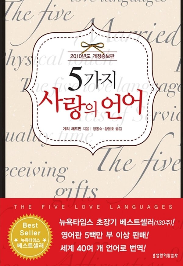 결혼에 대해 신앙과 종교적으로 해답을 얻고 싶다면 저명한 기독교 상담가이자 결혼 생활 세미나 인도자로 40여 년 이상 부부들을 위한 상담 사역을 해오고 있는 게리 체프먼이 저술한 <5가지 사랑의 언어>를 읽어보자. 상대를 인정하는 말과 함께하는 시간, 선물, 육체적인 접촉, 봉사까지 다섯 가지 사랑의 언어를 배울 수 있다. 사랑하는 사람과의 관계가 어렵다거나 결혼을 준비하는 사람이라면 꼭 기독교인이 아니더라도 이 책을 읽어보면 많은 것들을 배울 수 있다.