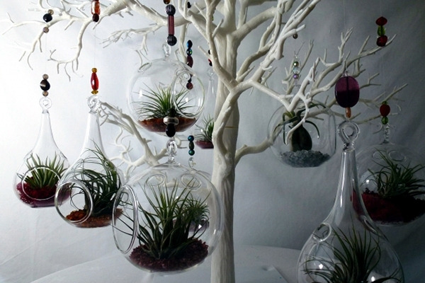 틸란드시아는 흙에 심지 않아도 공기 중의 수분과 먼지 속의 미립자를 자양분 삼아 자라는 식물이다. 한마디로 흙과 물 없이도 살 수 있는 식물. 본래 건조한 지역의 바위, 나무 등에 기생해서 사는 식물로, 접시 위에 얹어두어도 자라기 때문에 관리하기가 매우 쉽다. 작고 약해 보이지만 의외로 보라색 꽃을 예쁘게 피우며, 먼지를 먹는 식물이기 때문에 공기 정화 기능도 가지고 있다.