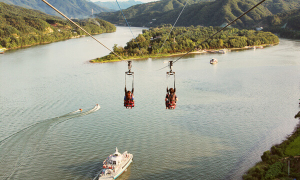 짚와이어는 약 80m 높이의 타워에서 와이어 로프에 매달려 이동하는 친환경 레포츠 시설이다. 시속 60~80㎞의 속도로 이동하며 약 1분 동안 높은 곳에서 전경을 한눈에 내려다볼 수 있다. 우리나라에서는 경기도 가평의 스카이라인 짚와이어가 대표적이다.
