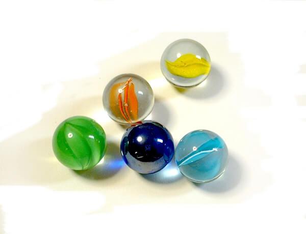 구슬치기 외에는 딱히 어떤 놀이의 도구로 쓰이지 않았지만 왜인지 구슬치기를 하지 않은 아이들도 모두 집에 몇 개씩은 갖고 있었던 유리 구슬. 영롱한 빛을 내는 이 구슬은 그냥 예뻐서 욕심을 내는 경우도 있었다. 연두색, 파란색의 유리 구슬이 가장 대중적이었으며, 이중에서도 파란색이 인기가 좋았다.