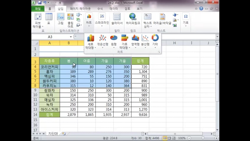 직장의 매출 현황표나 판매량 등의 데이터를 작업할 때 필수로 이용되는 그래프. 하지만 그래프 만드는 것이 귀찮고 어려운 사람들이 있다면 주목하자. 일일이 작업을 거치지 않아도 한 번에 그래프를 그릴 수 있는 꿀 팁도 있다. 데이터가 있는 셀을 선택한 다음 F11을 클릭하면 곧바로 ‘chart’탭이 만들어지면서 그래프가 나온다.