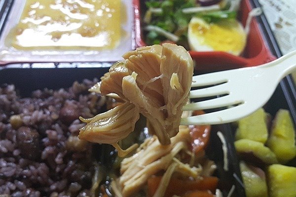 부드럽게 쪄 있는 닭 가슴살은 결 대로 찢겨져 있었다. 눈으로만 봤을 땐 메인 음식 양이 이렇게 적어서 되겠냐고 궁시렁 거렸지만 막상 먹어보니 적당한 양이었다. 못난 식욕을 둔 필자가 미.안.하.다!