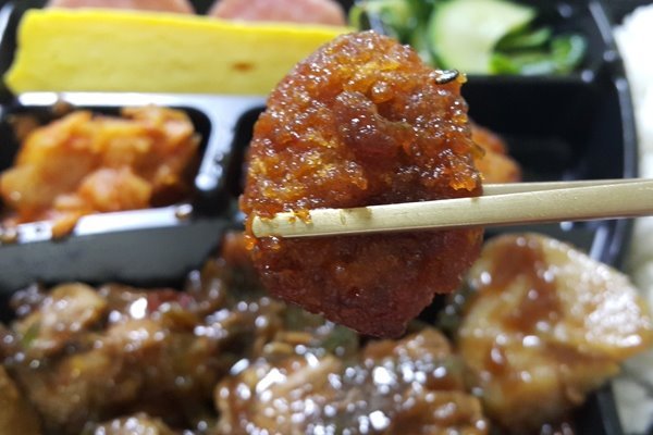메인 음식이 곧 도시락 전체의 맛을 정하는 결정적인 역할을 하게 된다. 이 음식은 백종원님의 수많은 음식 중 하나인 닭조림백반 레시피를 재현한 것이라고 한다.