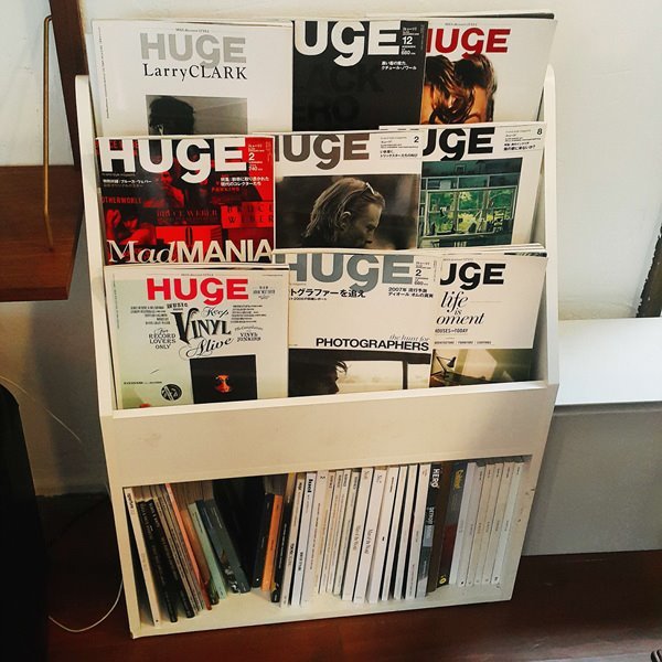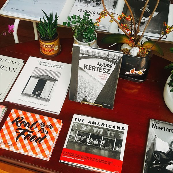 사진 책방답게 사방이 사진집들로 꽉꽉 채워져 있었다. 왼쪽 벽면 책장은 맨 위쪽 선반에만 책을 가지런히 세워놨고, 책장 안에는 책들이 가로로 눕혀진 형태로 자리해 있었다. 정면 벽면에는 나무 선반 위에 인상적인 표지의 사진집들과 포인트 소품이, 오른쪽 벽면 쪽에는 북마스터가 일하는 공간이 있었다. 일하는 공간의 경계선이 사진집들로 채워 있어 특별히 눈에 탁 트지 않은 점이 좋았다. 아, 그리고 사진집뿐만 아니라 사진 관련 잡지들도 있었는데, 과월호라고 하니 참고하길 바란다.