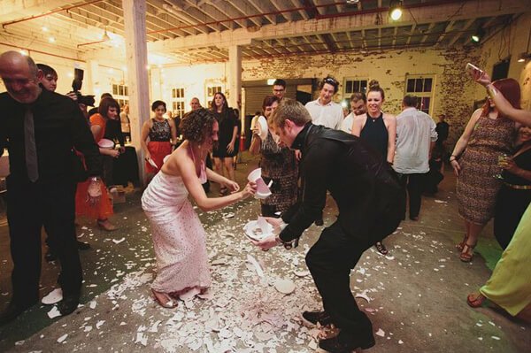 독일에선 결혼식 전야에 폴터아벤트(Polterabend)라는 파티를 여는데, 이날 파티에 참석하는 사람들은 자신에 집에서 오래된 접시를 몇 개 가져와 신혼부부의 집 앞에 던져 깨뜨린다. 이것이 신혼부부에게 액운을 없애주고 행운을 가져다준다고 믿기 때문.