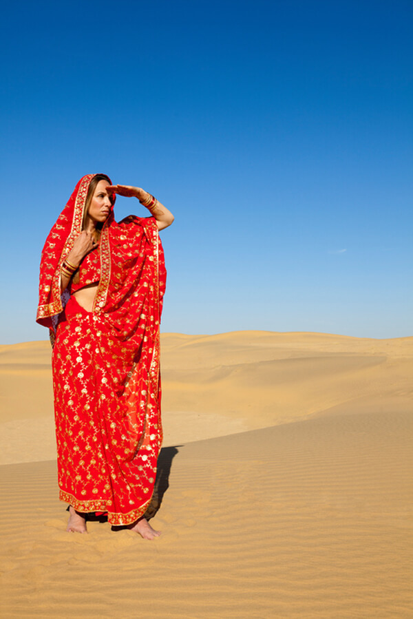 수천 년의 역사를 자랑하는 인도의 전통의상, 사리이다. 최초의 사리는 기원전으로 올라가 인도 북부에서 발견된 한 테라코타로부터 시작된다. 학자들은 고대 인도 사원의 무용수들 사이에서 발전했을 가능성이 있다고 추정하고 있다. 온 몸을 휘감은 화려한 사리의 비밀은 사실 아주 긴 직사각형태의 천이라는 것이다. 너비 120cm, 길이 4~8m이르는 긴 천으로 온 몸을 휘감아 입는 것이 바로 사리인 것. 상반신을 덮은 후 아랫부분을 치마와 바지의 형태로 만들어 입을 수 있으며 지역, 계층, 종교적 배경에 따라 다양한 방식으로 변주된다. 현재는 인도 여성의 대표적인 전통의상으로써 중요한 행사 등에 빠질 수 없는 정장으로 착용되고 있다.