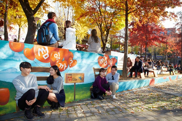 썸타는 계단은 이대역 2번 출구 앞 대현 공원에 있다. 이곳의 벽화들은 실제 젊은이들의 썸과 관련된 사연들을 수집하여 그림으로 재미있게 그려냈다. 이런 벽화들을 보면서 걸으면 시간 가는 줄도 모를 것이다. 또한, 군데군데 사진 찍기 좋은 벽화들도 많다. 연인과 함께 예쁜 사진을 남기기에도 좋은 곳이다.
