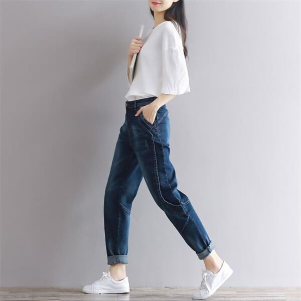 와이드 핏 청바지는 허리 이하로 통이 넓어져서 멀리서 보면 치마 같아 보이는 풍성한 스타일의 청바지라고 할 수 있다. 통이 넓은 것이 멋스럽기도 하지만 원단이 많이 쓰이는 만큼 청바지 특유의 무게감이 있는 것도 사실이다. 따라서 키가 큰 사람이나 다리가 길어 충분히 핏을 소화할 수 있는 체형의 사람들이 입으면 멋스럽다.