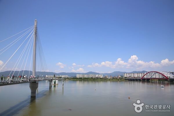 강원도 춘천에 위치한 의암호 스카이워크는 길이 190m이르는 전국 최대 규모를 자랑한다. 호수 한복판에 있는 물고기 조형물을 사이에 두고 만들어져 특별한 볼거리를 갖췄다. 아래를 내려다보면 푸른 강물이 넘실거리는 스릴을 만끽함과 동시에 의암호가 계절별로 뽐내는 아름다운 비경을 감상할 수 있어 춘천의 새로운 관광명소로 부상했다.