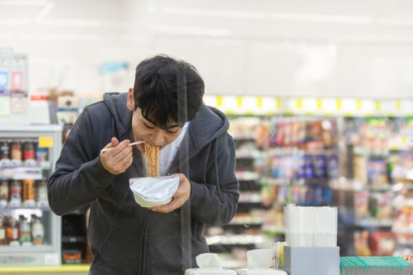 한국에서 간편한 식사의 대명사는 바로 3분 컵라면이다. 3분이라는 조리 시간은 뚜껑을 덮기만 하고 기다리기만 하면 돼 짧고 매우 편리하지만, 일상이 고단하고 촉박한 한국인에게 3분은 매우 긴 시간일 수도 있다. 이에 3분 컵라면의 3분을 못 채우고 뜨거운 물을 붓고 휘휘 저어 면이 적당히 풀어지면 그냥 섭취하는 경우는 한국인들의 삶 속 매우 평범한 식습관이다.