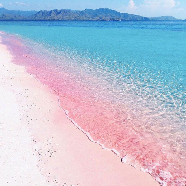 인도네시아의 이색적인 여행지 코모도 섬 국립공원에서는 핑크 샌드 비치를 볼 수 있다. 보통 바다와 함께 있는 모래는 하얀색을 떠올리게 되지만 이곳은 분홍빛을 띠고 있다. 보면 볼수록 그 신비함에 빠져들게 되는데 파도에 휩쓸려온 붉은 산호 조각과 조개껍질 등이 모래에 섞이면서 변하여 이런 매력적인 색을 띠게 됐다고 한다. 에메랄드빛 바다와 핑크 모래가 이루는 아름다운 광경은 눈과 마음 그리고 사진으로 오래오래 남겨두기에 안성맞춤이다.