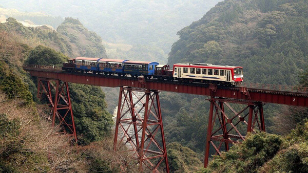 미나미아소 열차는 일본에서 가장 활발하게 진행 중인 활화산인 구마모토현 아소산을 지나가는 열차다. 시스템 당국에 따르면 화산이 언제 폭발할지 예측할 수는 없지만, 폭발이 일어나도 미나미아소 철도는 안전하게 운행할 수 있는 시스템을 구축했다고 전한다. 하지만 지진 발생 시에는 실제로 운행을 중지하기도 해 평상 시 승차하는 것도 불안할 수 밖에 없는 열차다.