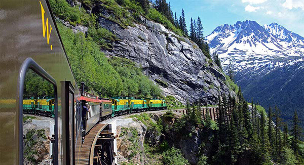 1900년에 개통한 화이트 패스 앤 유콘 루트 열차는 알래스카의 스카그웨이와 화이트유콘을 연결하는 좁은 게이지의 철도를 운행하는 유서 깊은 산악 관광 열차다. 만년설이 녹아 만들어진 호수, 깊은 협곡을 파고드는 브라이들 베일 폭포가 장관이다. 산허리를 깎아서 만든 철로는 실제로 가파른 절벽을 지나칠 때마다 콩닥콩닥 아슬아슬함을 안겨준다. 열차는 모두 3종류가 있고 화이트패스 정상까지는 매일 2~3회 운행한다. 현재는 관광용으로만 활용되지만, 100년 전에는 황금을 실은 운송 열차가 달렸던 레일이다.