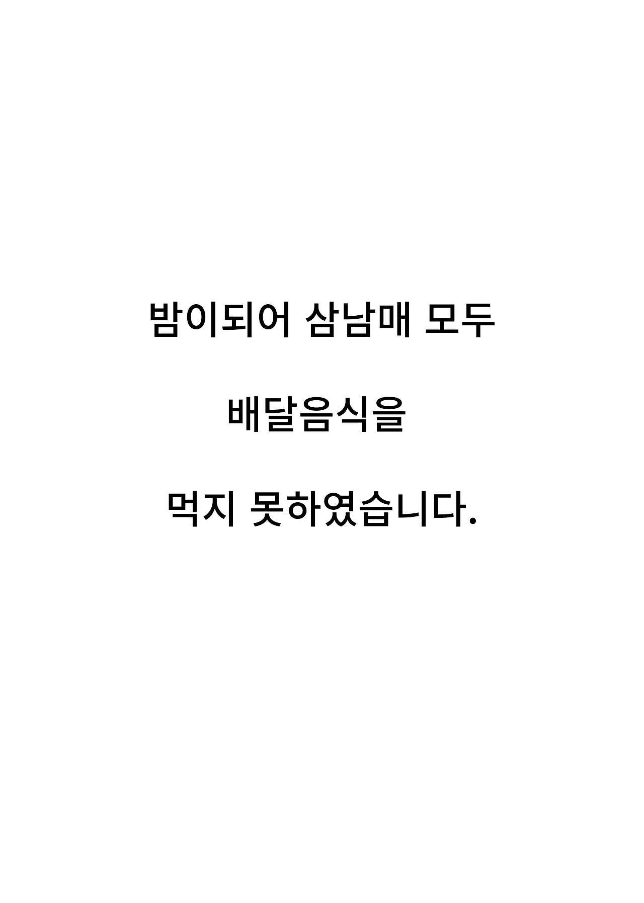 부모님이 늦는 밤, 삼 남매의 격정적인 배달 주문이 시작됩니다.