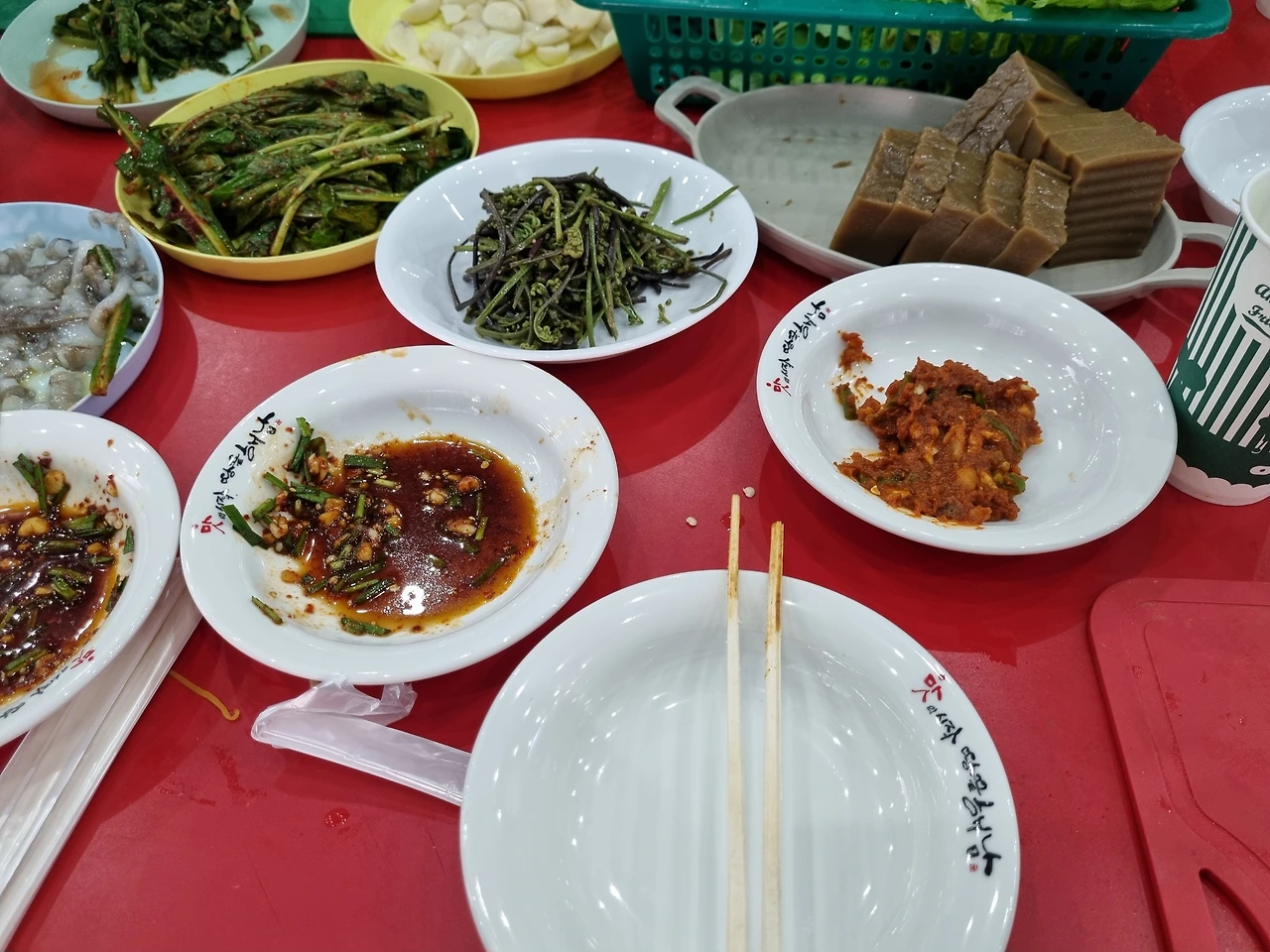 회식자리의 식탁은 전부 직접 캐온 것들로 이루어졌다. 도토리, 고들빼기, 고사리. 죄다 산이 내어준 것이다. 낙지도 뻘에 가서 직접 잡아왔다. 이모님은 낙지 탕탕이를 해오셨는데, 낙지 탕탕이를 처음 본 나로서는 상당히 충격적이었다. 아니, 살아있잖아요. 살아 움직이잖아. 저걸 어떻게 입에 넣지. 살아있는데. 움직이는 동물을 산채로 입에 넣을 수 있다는 게 믿기지 않았다.