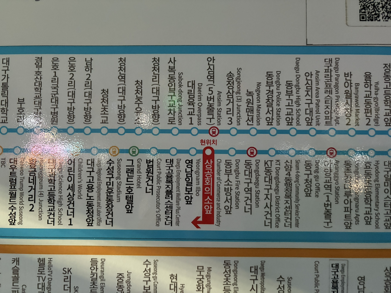 대구 여행에서 장소 이동을 위해 버스를 기다리고 있었다. '몇 정거장을 가야 되더라?' 하는 마음에 버스 노선도를 확인했다.