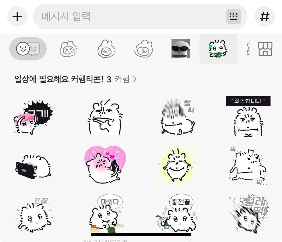 가장 최근 한 업데이트의 경우 +(첨부), 이모티콘, #(검색)이 3분 할로 나뉘었습니다.