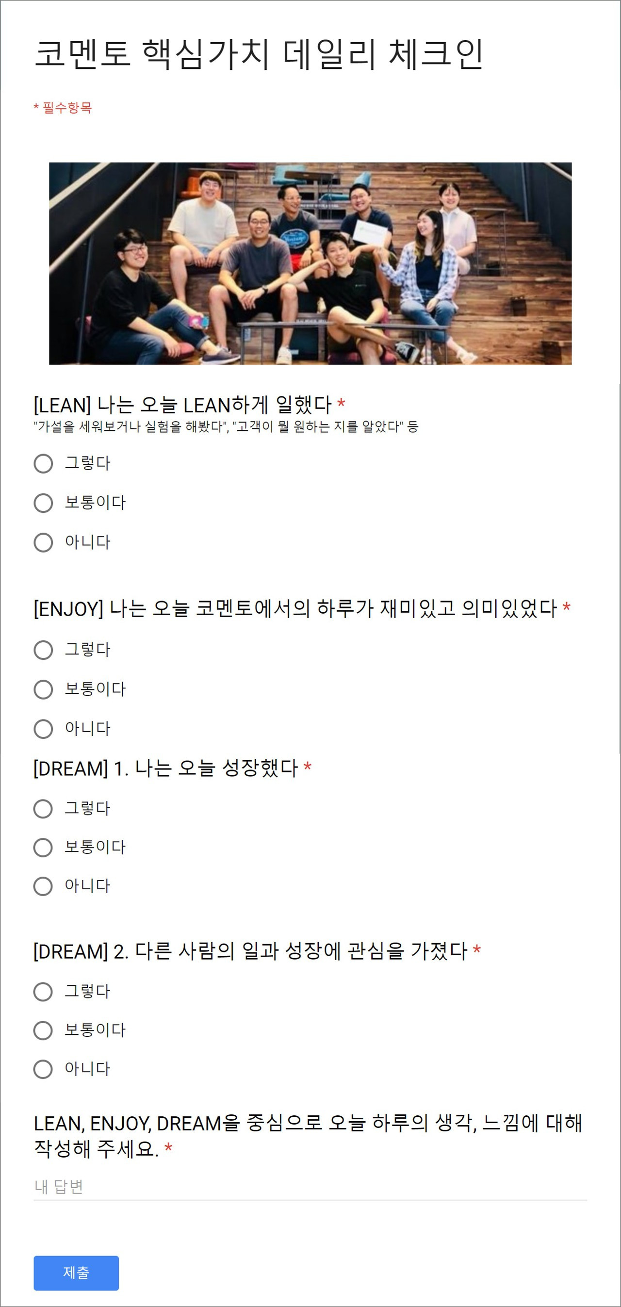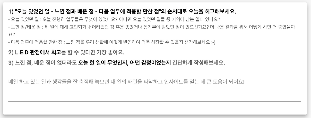 - 하루를 회고하는 항목과 핵심가치 체크 항목이 섞여 있어서, 회고에 집중하기 어렵다.
