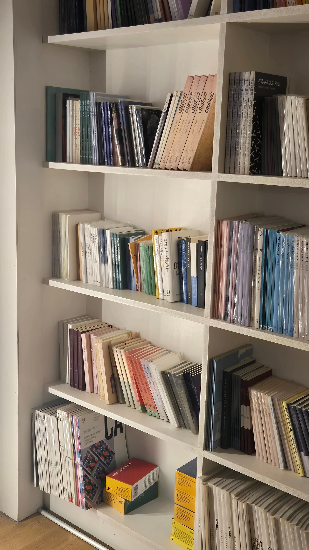 누군가 가지런히 정돈한 책장의 책들을 본다. 겉으로 보기엔 정돈된 질서 같지만, 사실 그 안은 채 비워내지 못한 문장들로 빽빽하다.