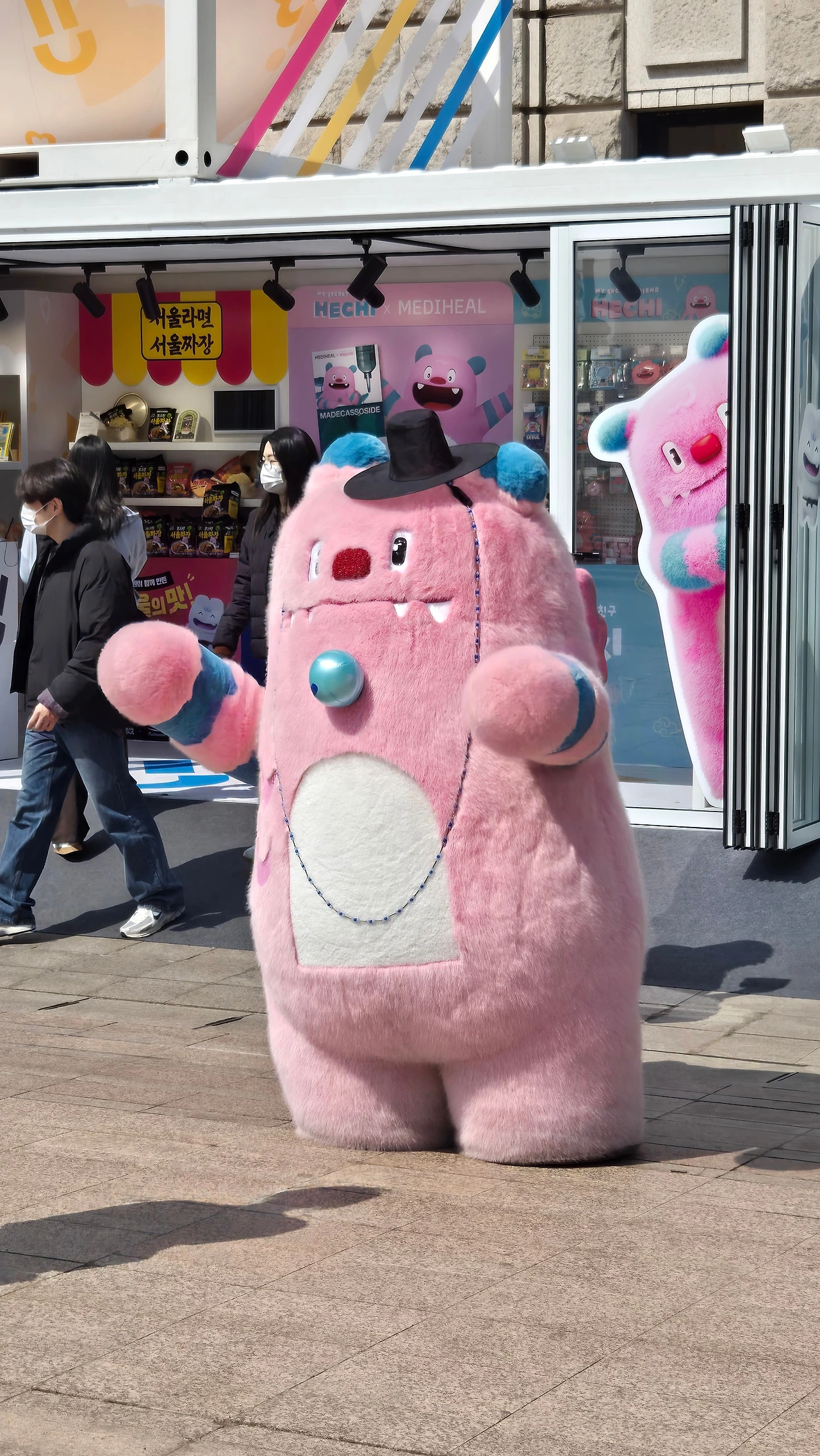 수업을 마치고 나온 길 위에서 만난 주황색 해치는 오늘 내가 배운 '무언의 소통'에 마침표를 찍어주었다. 하루를 시간당 급여로 계산하며 쫓기듯 살아온 나의 조바심을 비웃기라도 하듯, 해치는 아무런 조건 없이 커다란 품을 내어주었다. 보드라운 인형의 촉감이 핑크색 재킷 소매 안으로 스며들 때, 피로가 서린 나의 어깨는 비로소 가벼워졌다. 손끝으로 전해지던 고요한 대화의 여운이 해치의 품속에서 몽글게 퍼져 나갔다.