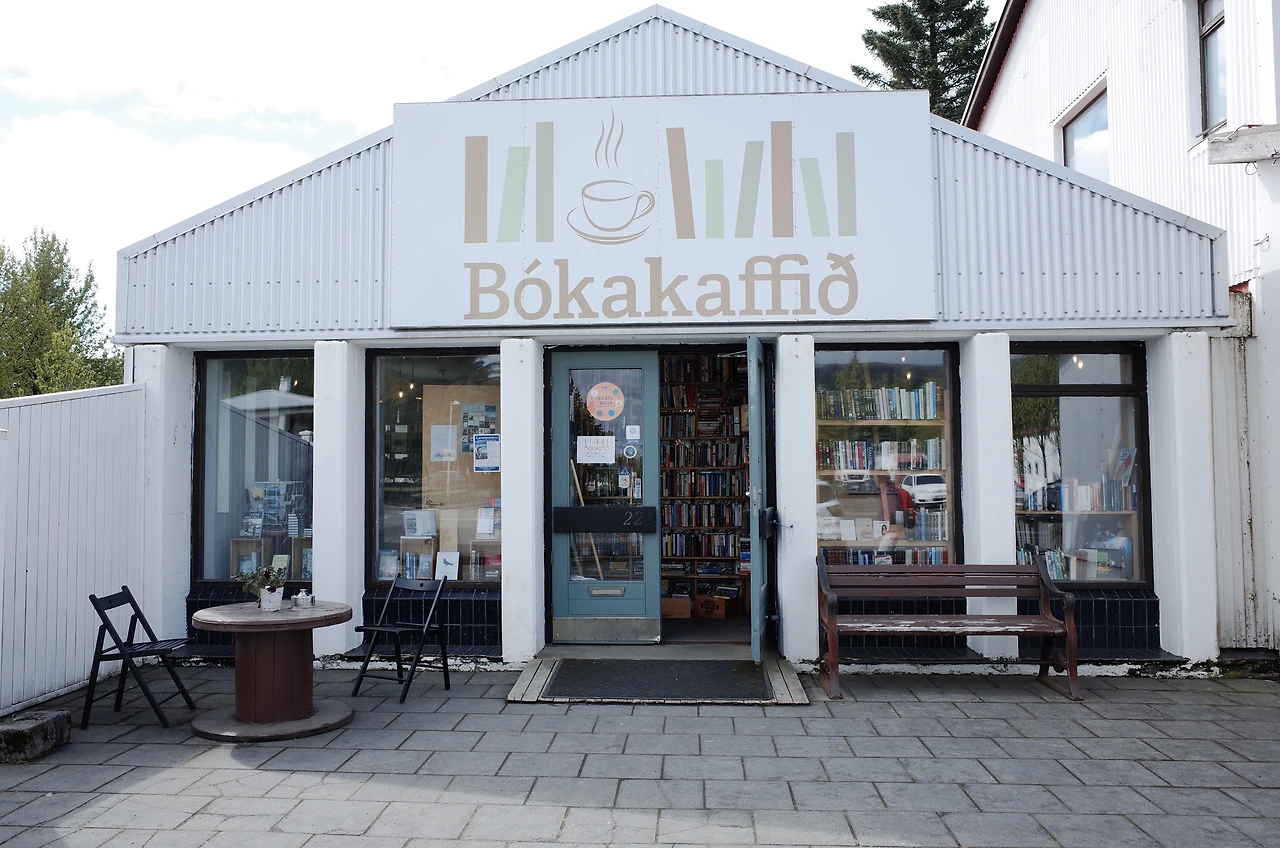이 날은 레이캬비크를 떠나는 날. 광대한 폭포들과 검은 해변 레이니스피라를 보기 위해 길을 나섰다. 야광 연두색 이끼로 덮인 언덕과 평야들이 켜켜이 쌓여 끝없는 지평선이 펼쳐졌다. 사방을 빙글빙글 360도 돌아봐도 움직이는 형체란 우리밖에 보이지 않는 드넓은 이 자연뿐인 게 기가 막혔다. 조금 후에 우리는 Selfoss라는 조그마한 마을에 다다랐다. 정차할 일은 없겠지 스윽 지나치려던 찰나 조수석에 탄 나의 방향으로 두 눈을 스매싱한 가게가 있었다. 희끄무레한 건물이었지만 예뻐 보였다. 게다가 어렴풋이 책장의 형상을 본 것 같았다. 촉이 왔다!