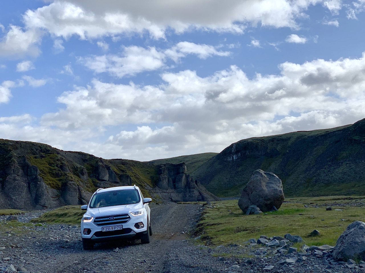 우지끈. 철퍼덕. 꽝. 엉덩이가 붕 떴다가 풀썩 내려앉았다. 아니 허공에 떴다가 좌석으로 곤두박질했다. 나름 튼튼한 차라고 빌린 사륜구동 포드가 균형을 잃고 양옆으로 몸서리친다. 무슨 소리냐고? 피야다르글리유푸르 캐년에서 파그리포스(fagrifoss) 폭포로 가는 길에 만난 비포장도로 덕분이다. 형광 녹색이 너울너울 등선을 이룬 기암괴석은 초현실적인 달리의 그림 속에나 있을법한 풍경인데 몸이 4D로 막무가내로 흔들리는 거 보니 꿈은 아니다. 거친 자갈밭을 올라타는 순간 익스트림 스포츠 선수가 된 기분에 사로잡혔다가 고개를 가로저었다. 지금 티비가 아니라 현실이야! 그것도 내가 당사자라고! 자갈밭의 울퉁불퉁한 표면에 몸이 상하좌우로 덜컹대자 도시 촌뜨기인 우리는 곧장 겁에 질려서 사색이 됐다.