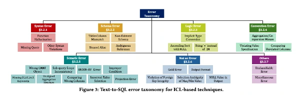 최근 Text2SQL 관련 공부를 하다가 흥미로운 논문을 보게 되었는데요. 바로 “A Study of In-Context-Learning-Based Text-to-SQL Errors“라는 제목으로 2,460개의 LLM 기반 SQL 쿼리 오류를 직접 분석해 총 29개 유형, 7가지 대분류로 정리한 논문입니다.