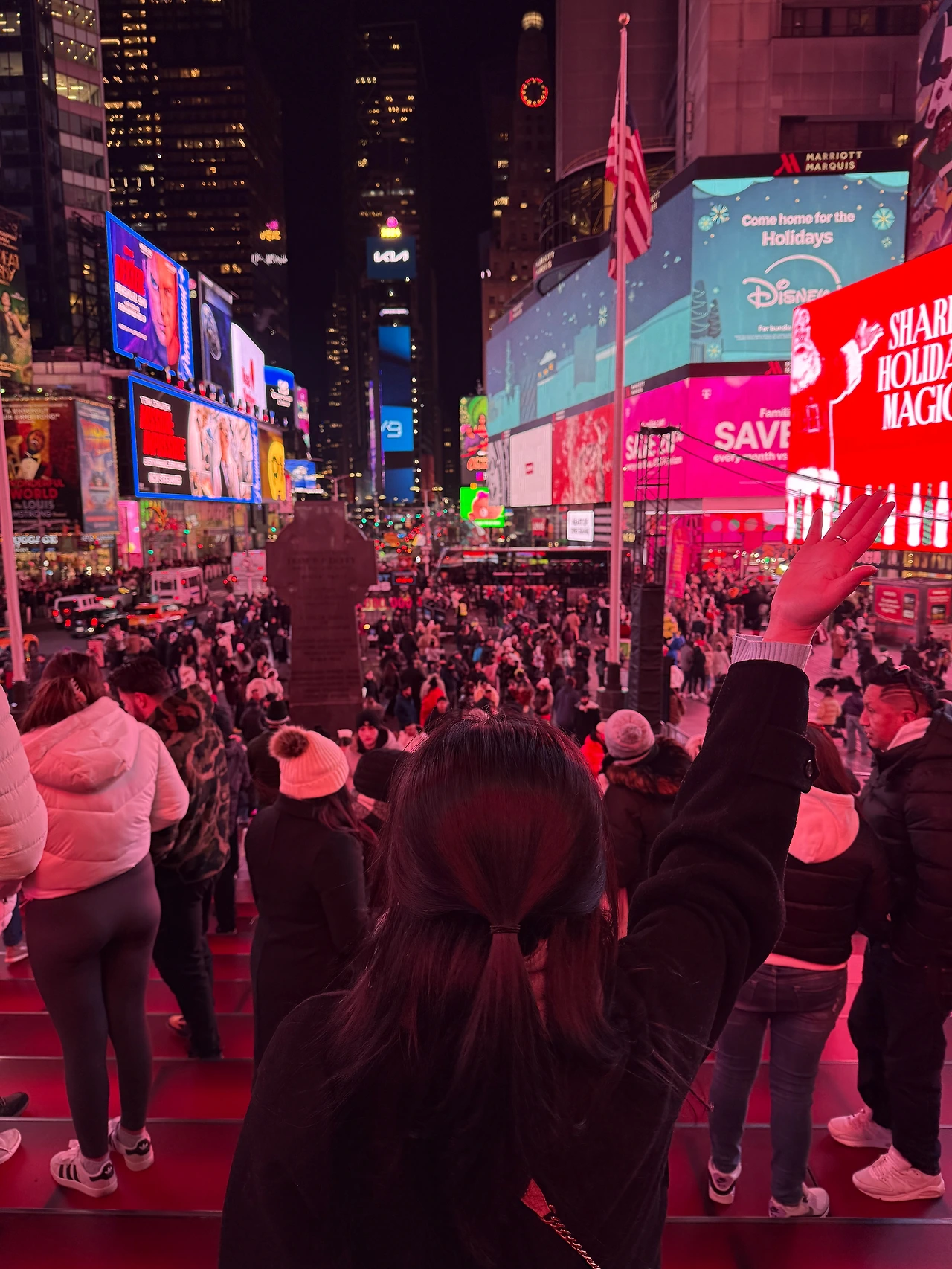 또, 타임스퀘어 광장의 계단에 올라가 사람들이 오고 가는 모습을 지켜봤다.
