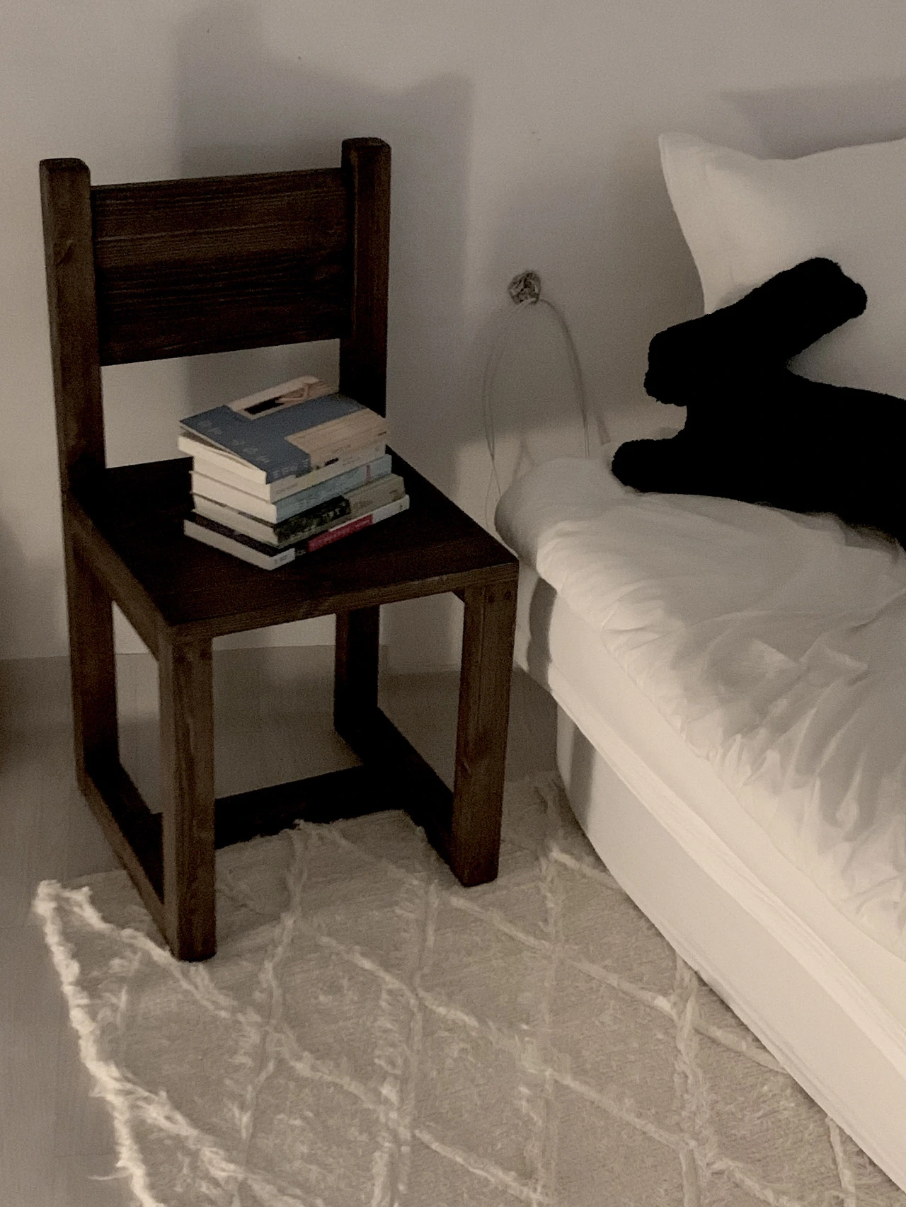한동안 소파 옆에 둘 의자를 찾아 헤맸는데 며칠 전 우연히 발견하고 집에 들였다. 정말 단순한 디자인의 의자인데 요즘은 이런 디자인을 찾기 힘들다. 의자가 반듯하게 각져있는데 그 모양이 왜 이렇게 귀여워 보이는지 모르겠다.