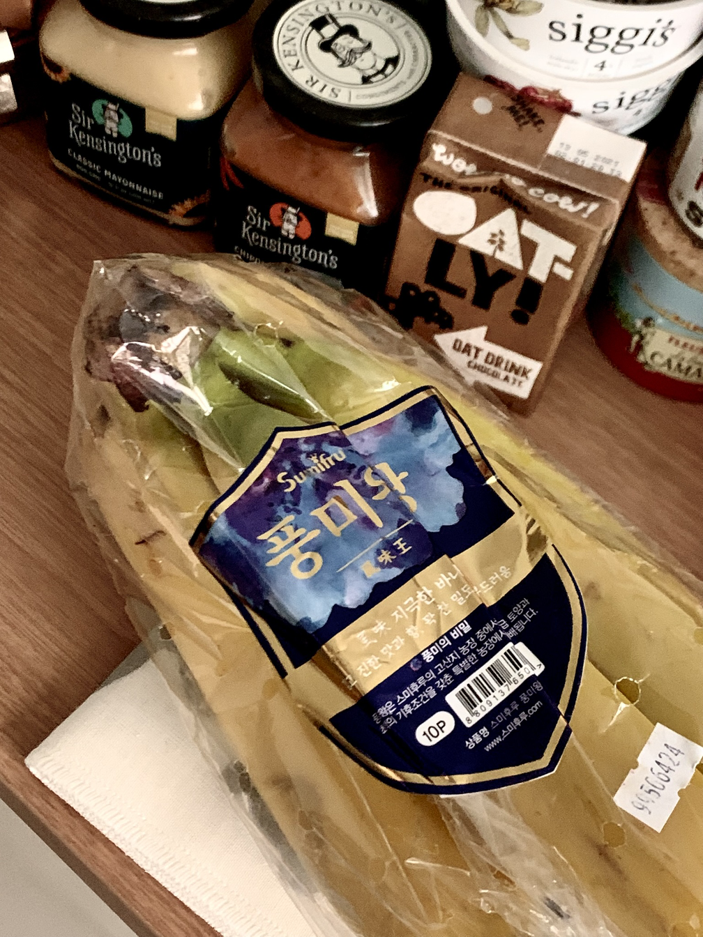 곳간 채울 때 행복한 1인. 후이펑 스리라차 소스 가격이 많이 올라서 슬프다. 바나나를 그다지 좋아하지 않는데 공복유산소 끝내고 먹는 바나나는 왜 이렇게 맛있던지. 스미후루 풍미왕을 제일 좋아한다. 난 덜 익은 바나나를 선호하는데 풍미왕은 많이 익지 않아도 식감이 녹진하면서 달큰하다.