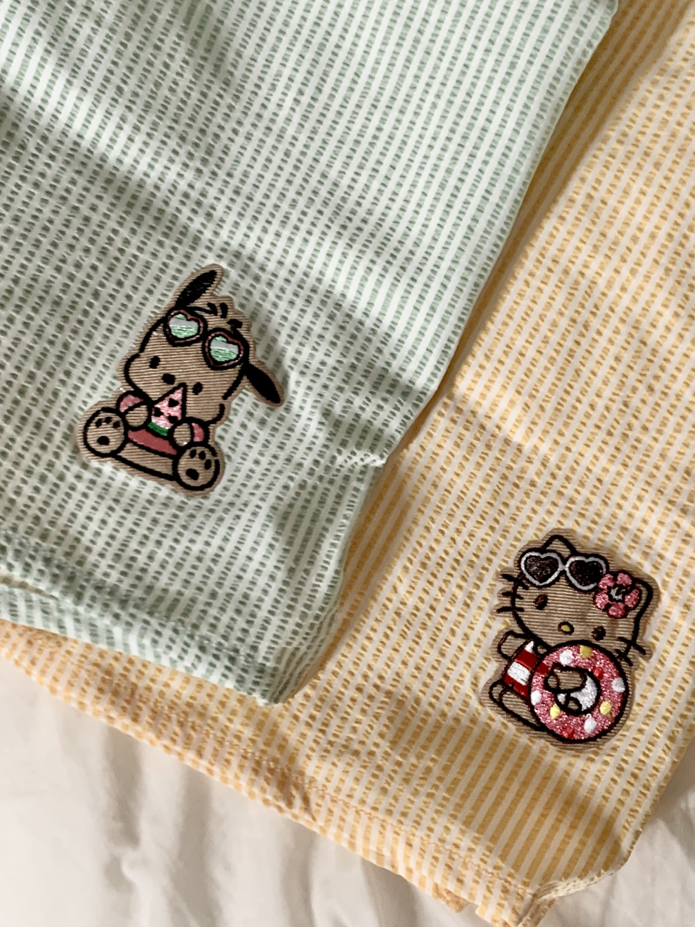 키티만 사려다가 포차코도 귀여워서 두 개다 데려왔다. 나중에 와펜만 뜯어서 재사용도 가능