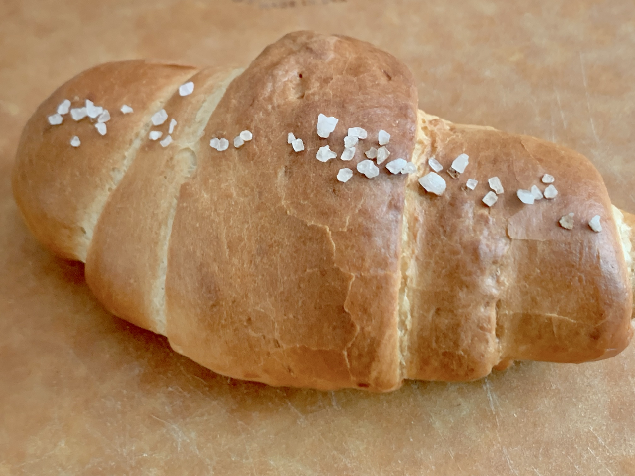 두 번째 소금빵. 기존 레시피 말고 다른 유튜브 참고해서 만들었다. 이번엔 제법 소금빵 모양으로 구워졌고 소심한 크랙도 생기고 구움 색도 나쁘지 않다. 난 소금 많은 게 좋아서 일직선으로 쭉 뿌렸더니 소금 과다 빵이 되어버렸네.