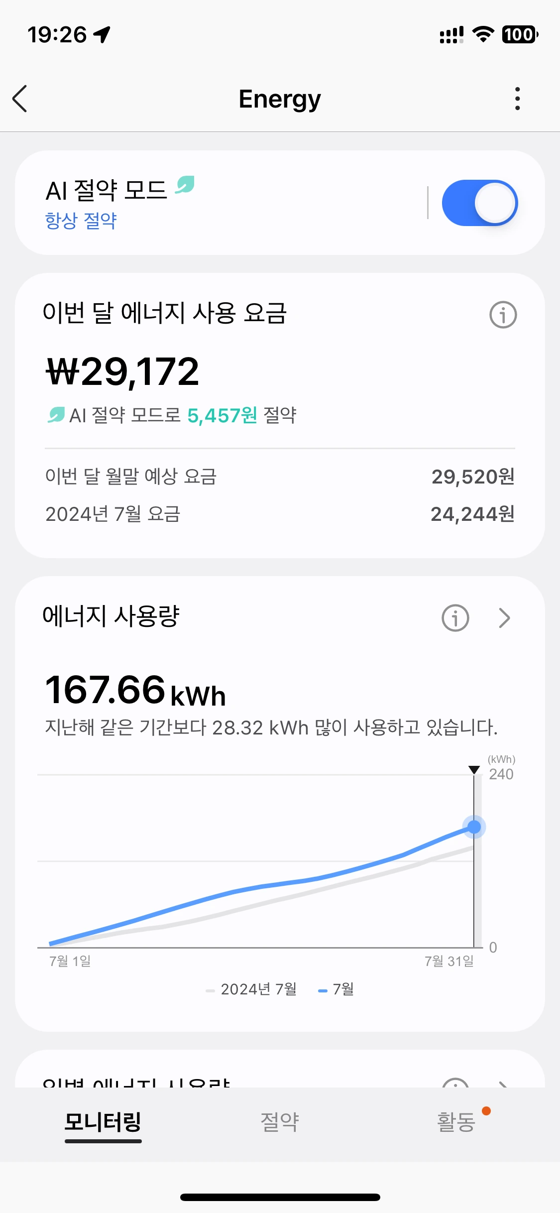 올해 7월 에어컨 전기세는 작년 같은 달 대비 5천 원이나 증가했네. 중간에 필터청소 한 번. 폭우 내릴 때 밤에 잠깐 두세 번 정도 끄고 나머지는 풀가동했다. 이 정도면 날씨가 미친 게 아니라 돌은 것 같다. 8월이 무섭다.