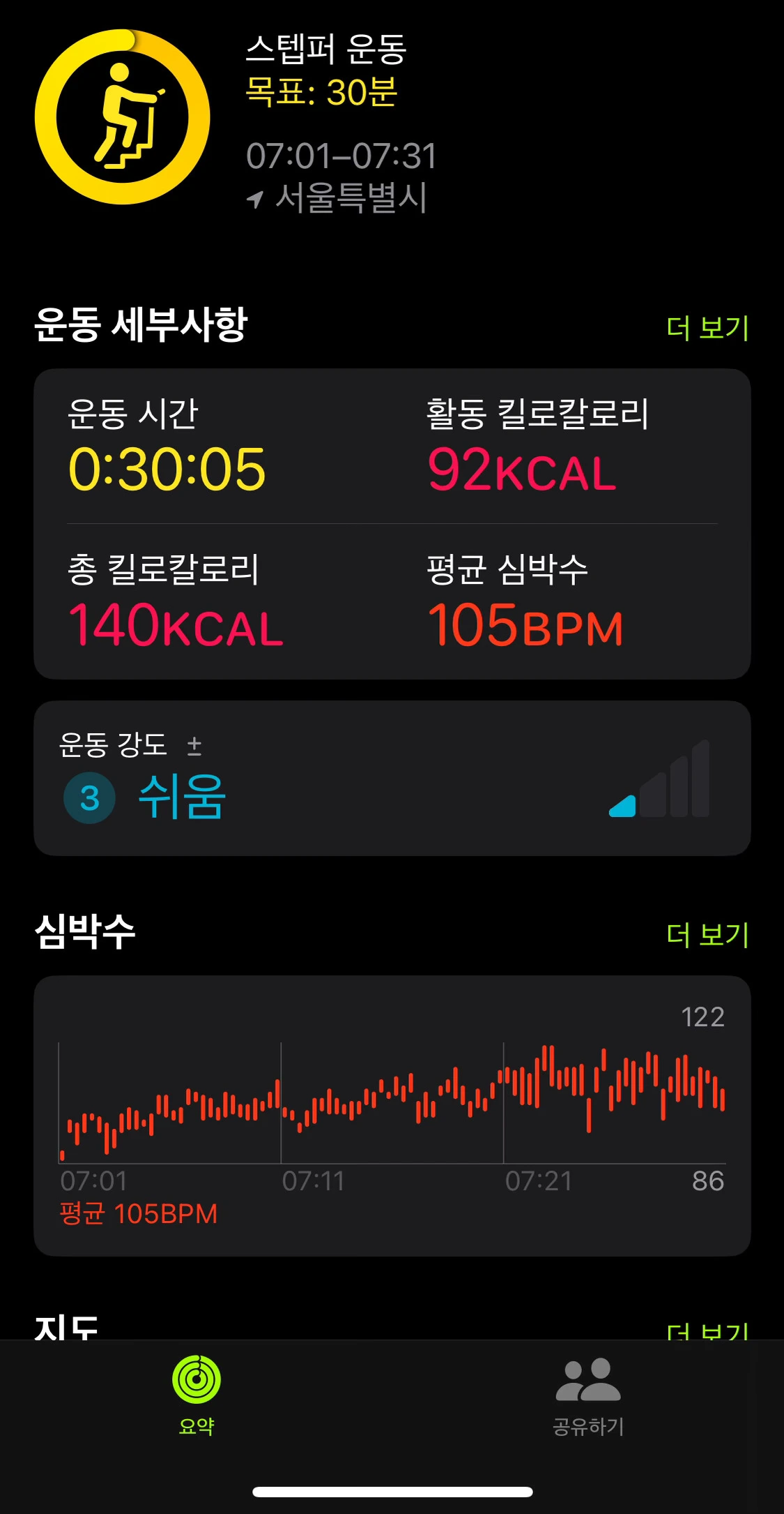 실내 유산소 홈트로 스텝퍼만 하다가 뭔가 깔짝깔짝 거리는 기분만 들고 영 별로라서 밸런스패드 바닥에 두고 뜀박질하는 걸로 노선을 살짝 비틀어 봤다. 처음엔 30분 동안 3km 해도 힘들었는데 보름정도 지나니깐 4km 정도는 뛰게 되더라. 최종목표는 30분에 5km인데 심박수가 자꾸 존2를 벗어나서 문제다. 지금 한 달 넘게 공복 유산소 30분 도전 중인데 휴식기 심박수도 50까지 떨어지고 몸도 가벼워졌다.