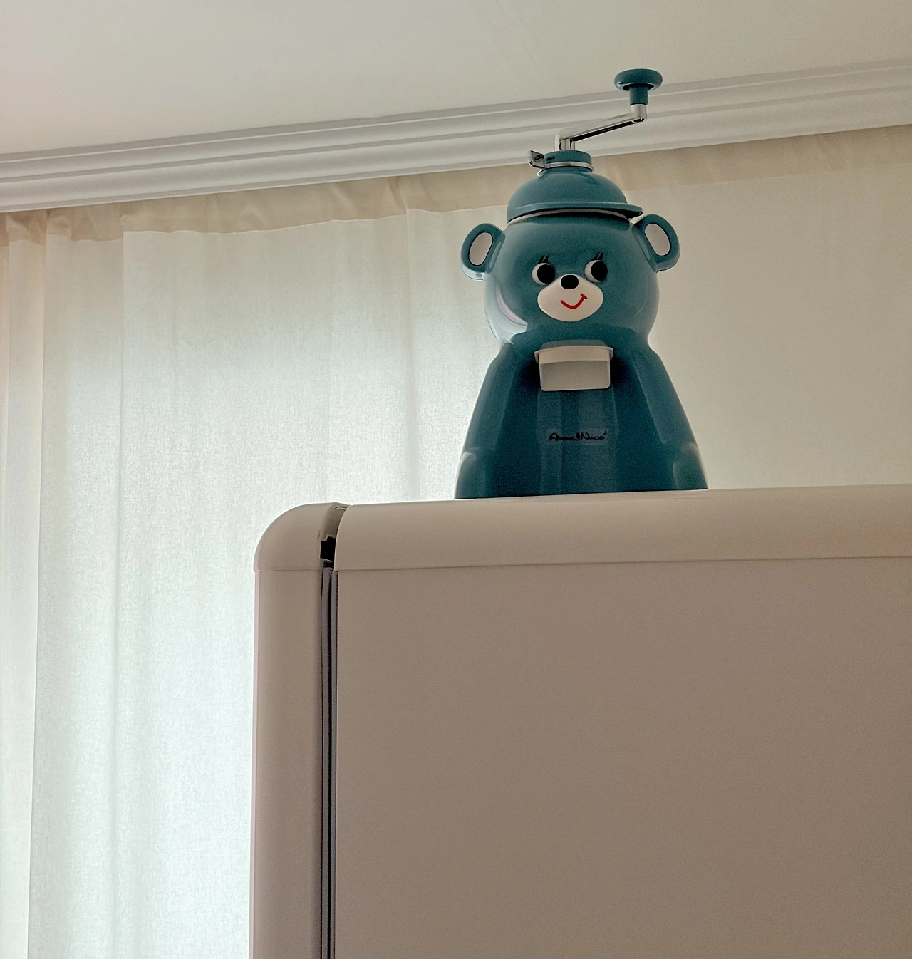 자라홈 저울에게 자리를 빼앗겨 냉장고 위에 안착한 쿄로짱 빙수기. 미안해 집구석이 좁아서.