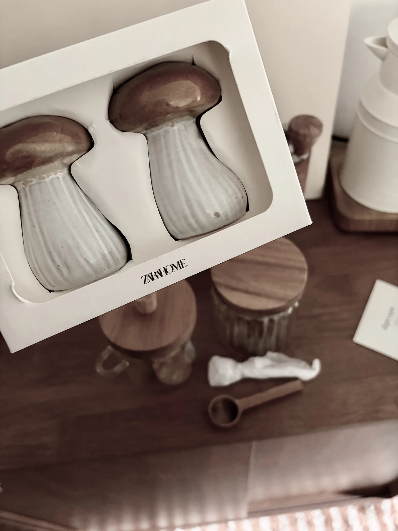 버섯 후추통. 너무 귀여워서 안 살 수가 없었다. 집에 캐니스터가 하나도 없어서 각각 다른 모양으로 하나씩 주문해 봤다.
