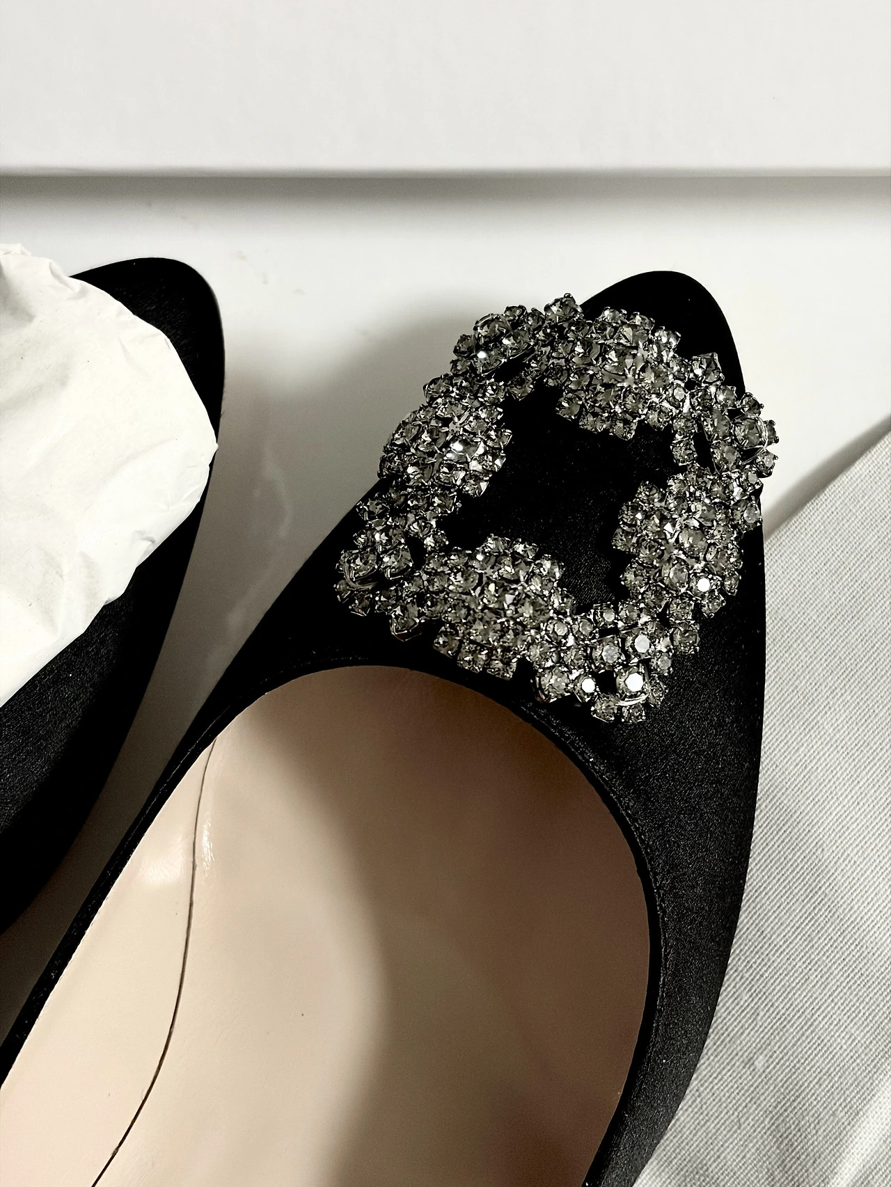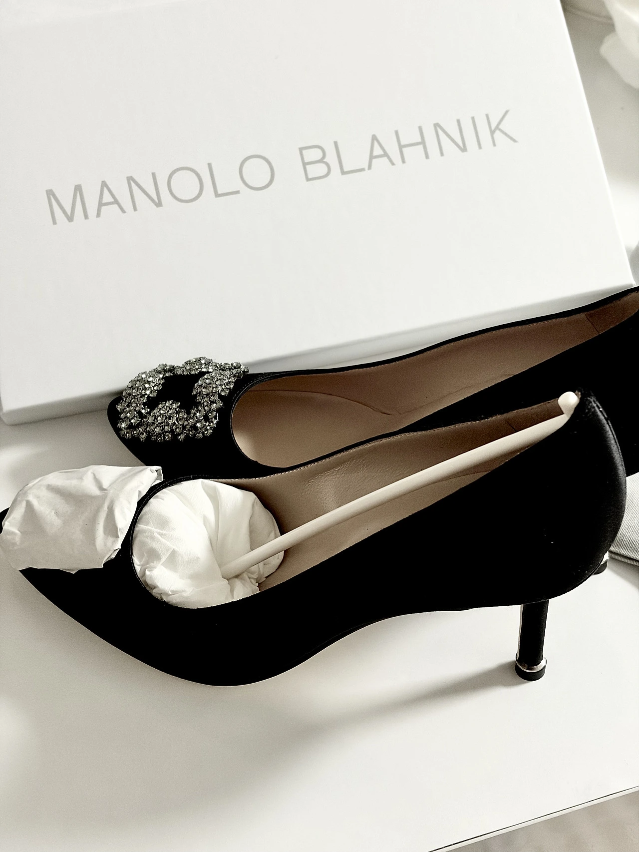 다음 달 림이 결혼식에 신고 가려고 구매한 마놀로블라닉 한기시 70. 파페치 생일쿠폰 왜 나는 안주는 거냐며. 뭔 짓을 해도 안되길래 그냥 로켓직구로 구매했다. 파페치 쿠팡이 인수한 거 이번에 알았다. 20대 때는 화이트주얼이 더 예뻐 보였는데 30대가 되니 블랙주얼이 예뻐서 블랙으로 주문했다. 발볼이 넓어서 반치수 크게 주문했는데도 앞코가 불편하다. 앞코는 발가락이 쏠려서 불편하고 뒤꿈치는 헐떡거리니 환장할 노릇이다.
