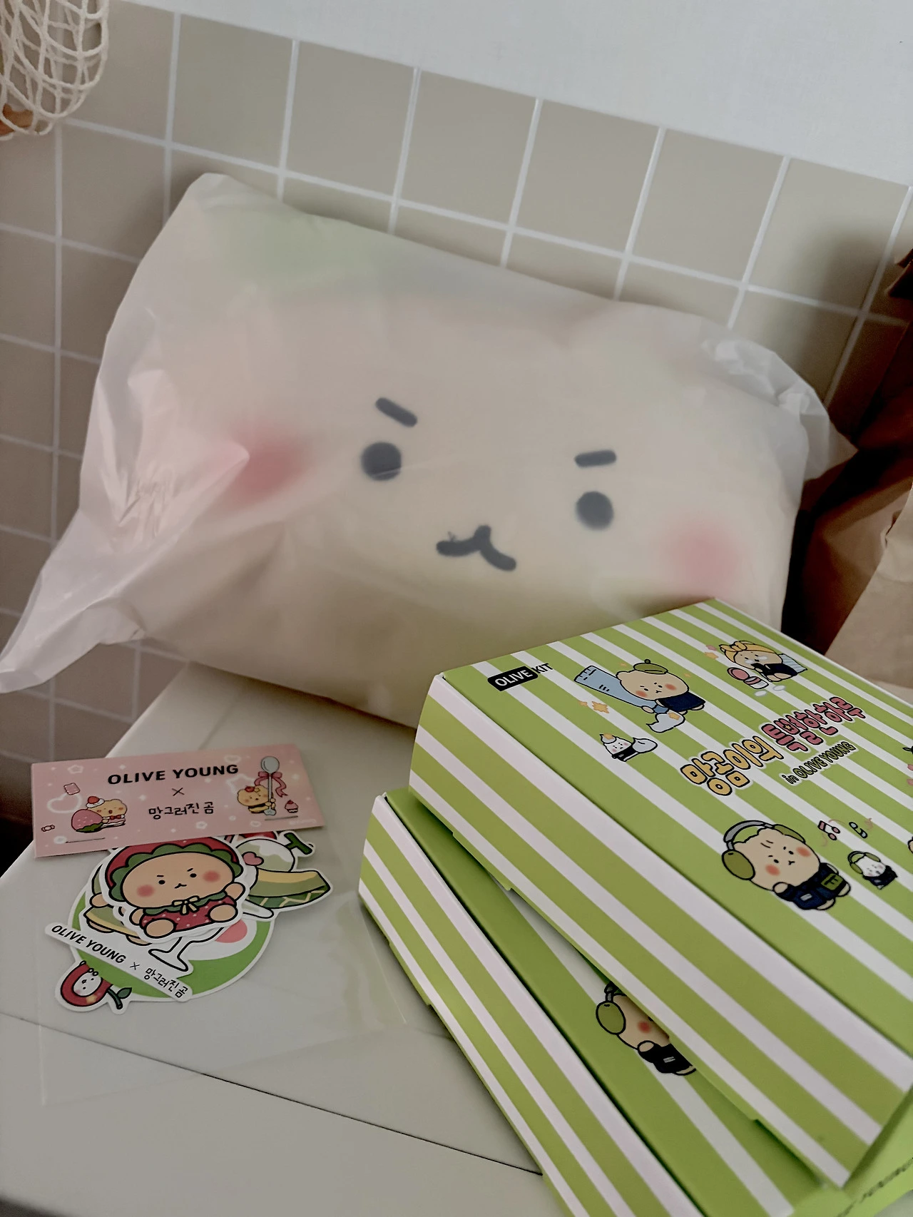 2월 올영 망곰대전에 참가하였다. 아니 쿠션이랑 파우치백을 사면 7만 원어치 화장품을 공짜로 준다는데 어떻게 안 사냐며. 귀여운 거 앞에서 나잇값 못하는 건 여전하다.