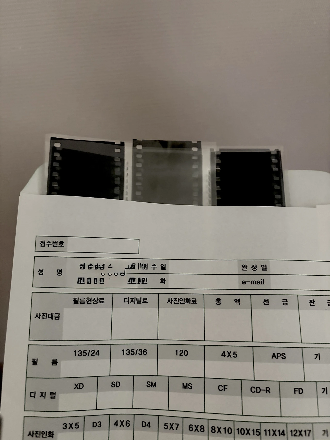 필름회수완료. 내 사진이었으면 무조건 폐기 요청했을 텐데 림이네 부부가 담긴 필름이라 배송비 내가며 돌려받았다.