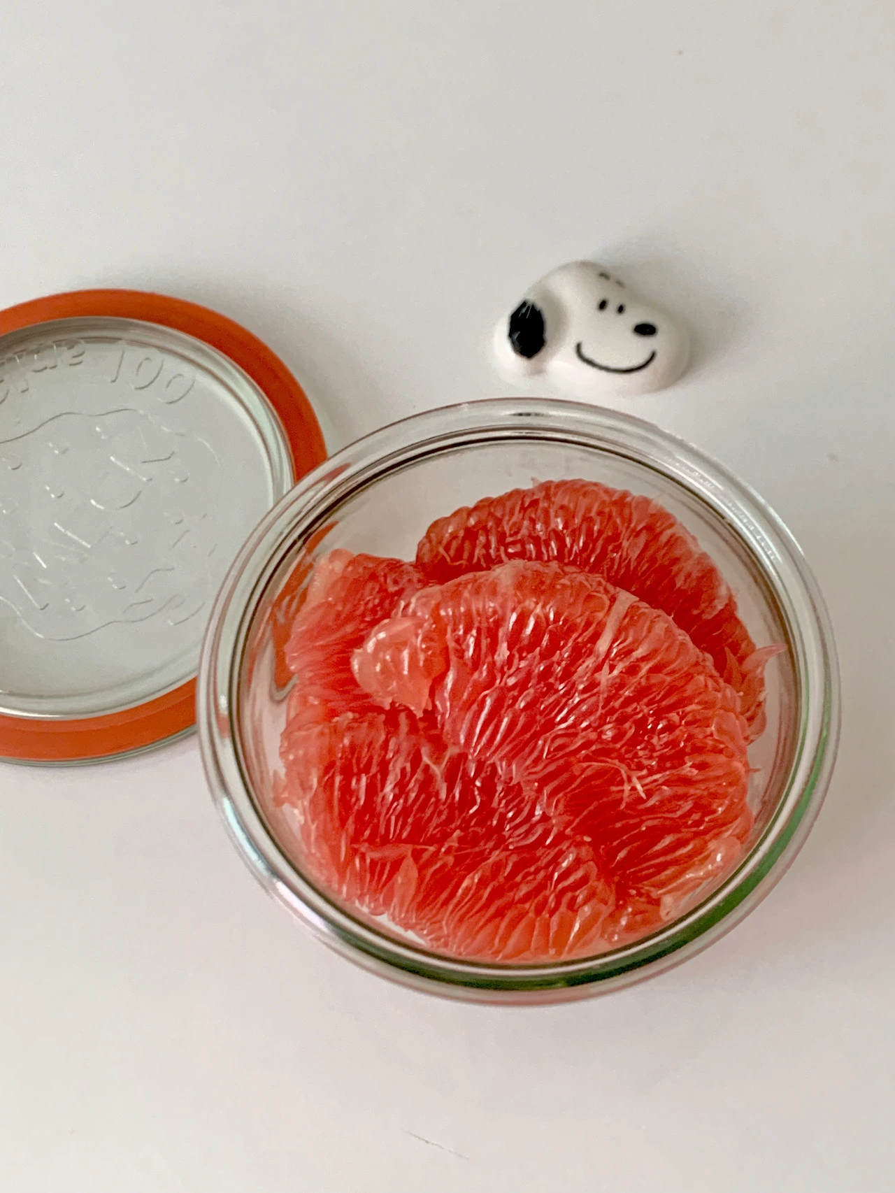 자몽 까는 게 보통일이 아니다. 이건 까본 사람만이 안다. 까다 보면 요령이 생기긴 하지만 시간이 크게 단축되지는 않는다. 2주에 한 번씩은 식단 도시락 밀프랩을 하기 위해 날 잡고 자몽만 까는데 이게 은근 스트레스 해소에 도움이 된다. 귀찮은데 스트레스 풀리는 참 이상한 자몽 까는 시간.