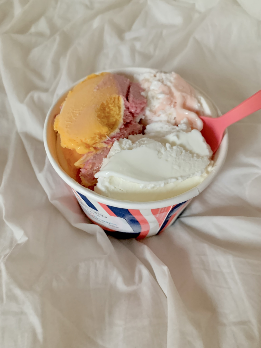 여름에는 요거트랑 레인보우샤베트, 애플민트로 주로 먹는데 애플민트가 없어서 피치요거트로 담았다. 역시 대체당은 따라올 수 없는 설탕과 액상과당의 달달함. 뜨거운 물로 샤워하고 무풍에어컨 밑에서 먹는 아이스크림이란, 말해 뭐 해.